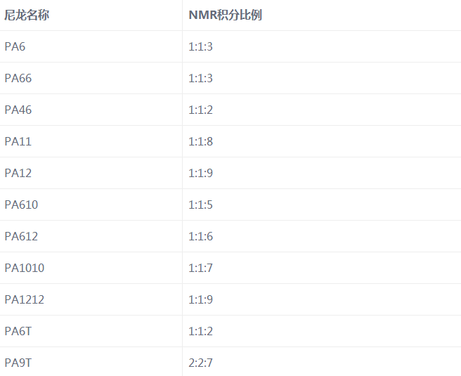 常見尼龍的類型以及代表物質見下表: